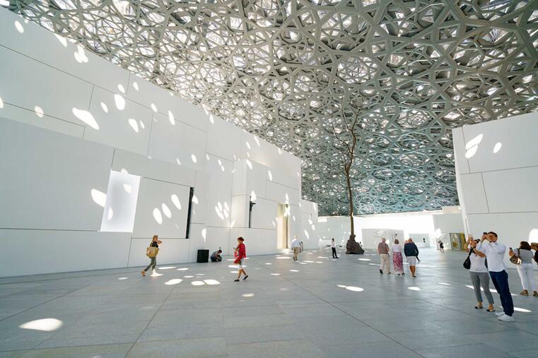 阿布扎比卢浮宫穹顶下的阴影斑驳