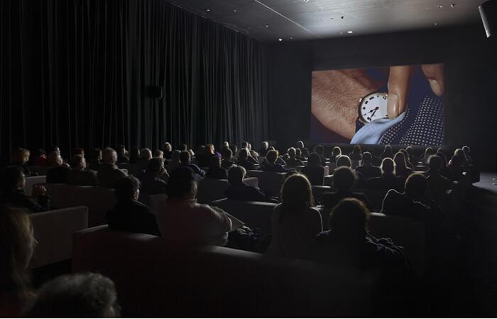 《时钟》是一件视频装置,由数千个影视片段剪辑而来,时长24小时,片中每枚钟表所显示的时间,刚好与观众欣赏时的现实时间同步。这正是该艺术品独到的创意理念,将欣赏者“拉进”艺术创作。