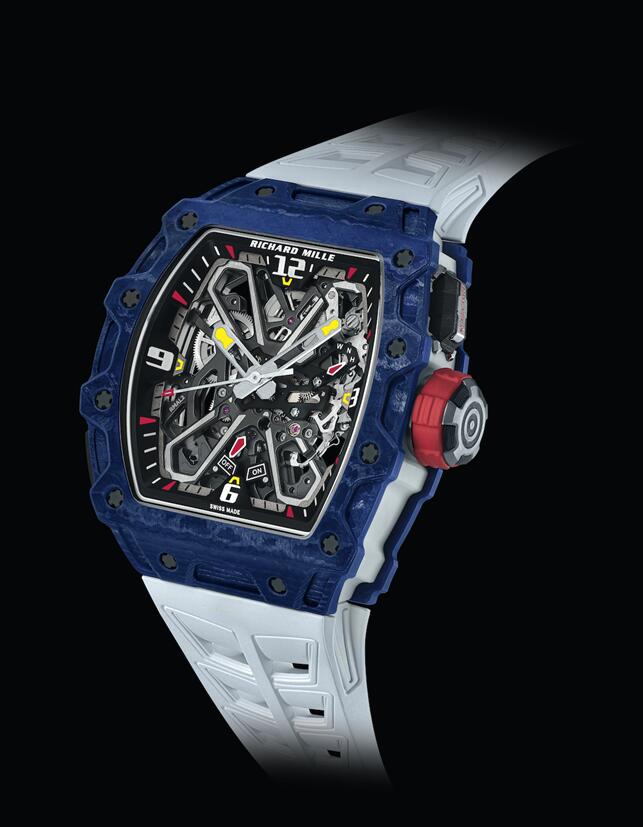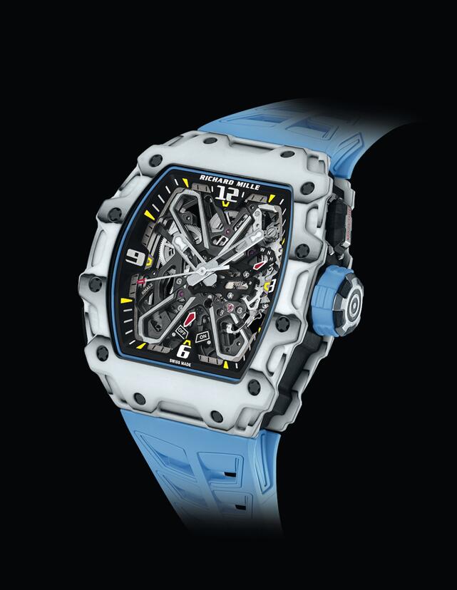 RM 35-03系列的另一个突出特色是多种材质的选择,其中Quartz TPT石英纤维,通过极细二氧化硅纤维平行排列成薄层,再经特殊工艺交错复合而成,外观呈现出独特条纹,质地轻盈且具备出色的强度,确保腕表保持稳定性能。