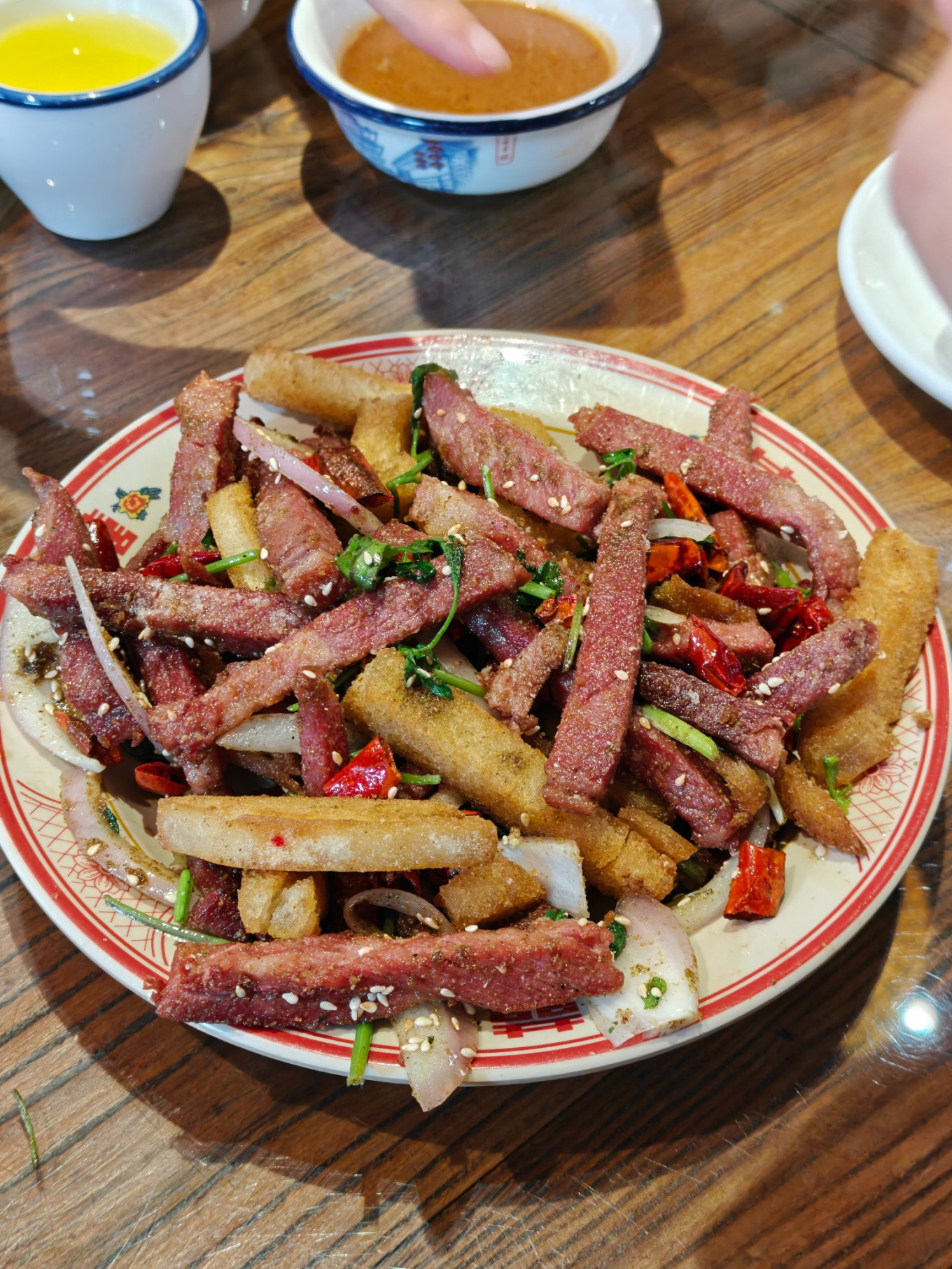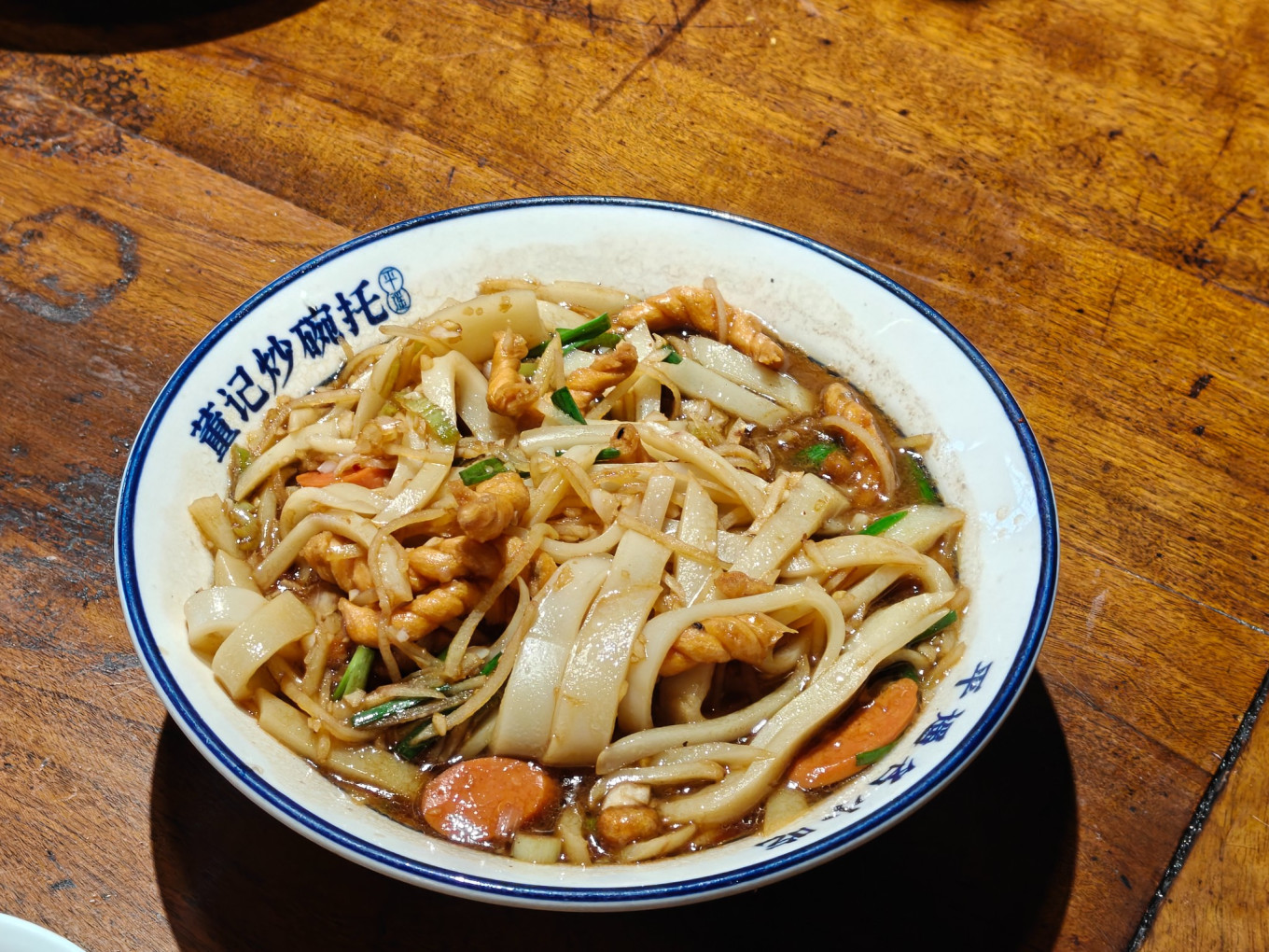 董记炒碗托。是一个小吃店,店面不大,但是,里面的小吃很好。我最喜欢他们家的麻花火腿炒碗托。这个不适合外带,一定要在店面吃,香喷喷的。另外,油泼面也好吃。山西和陕西本来面食就是特色,踩雷,不可能的。