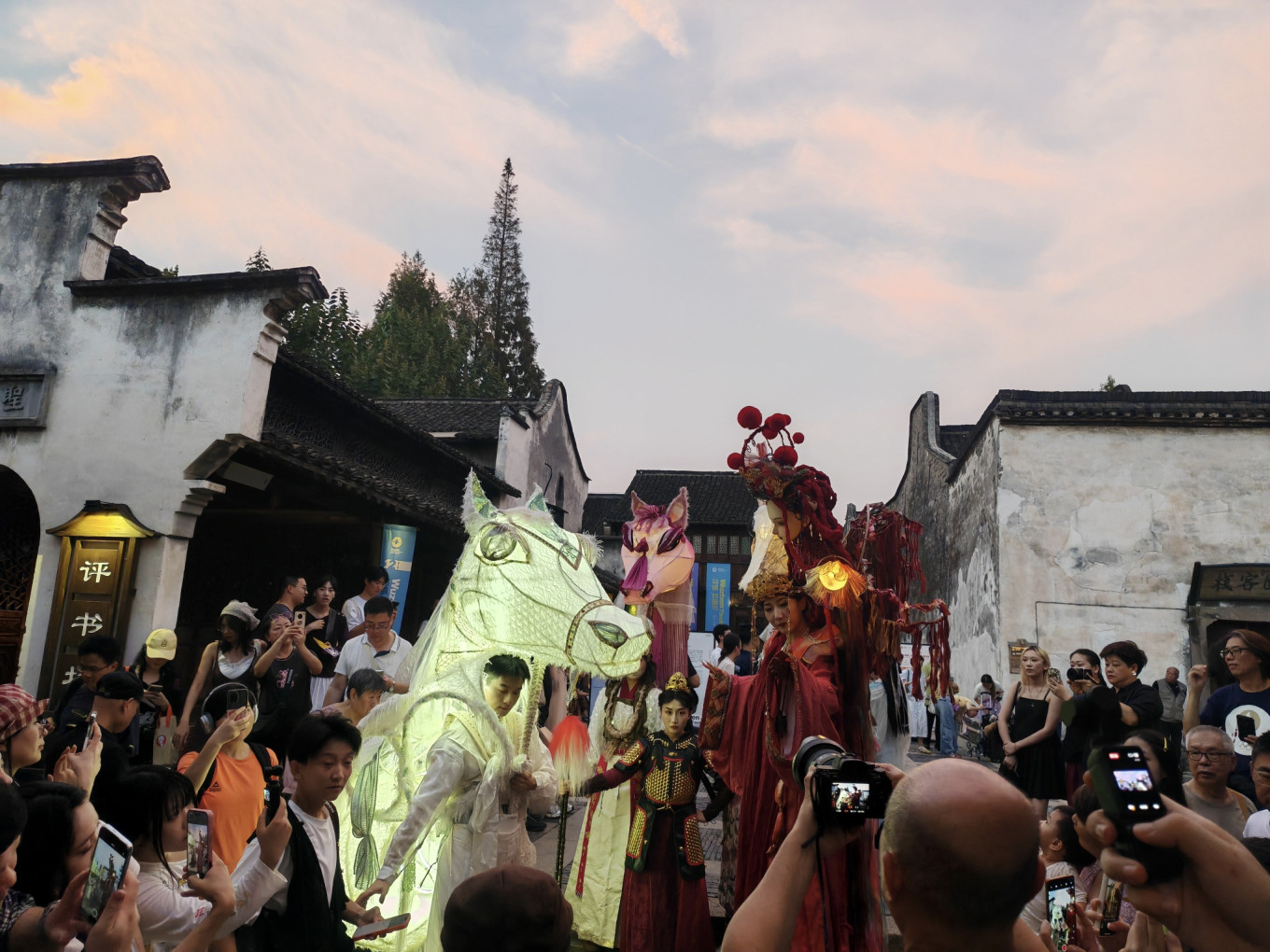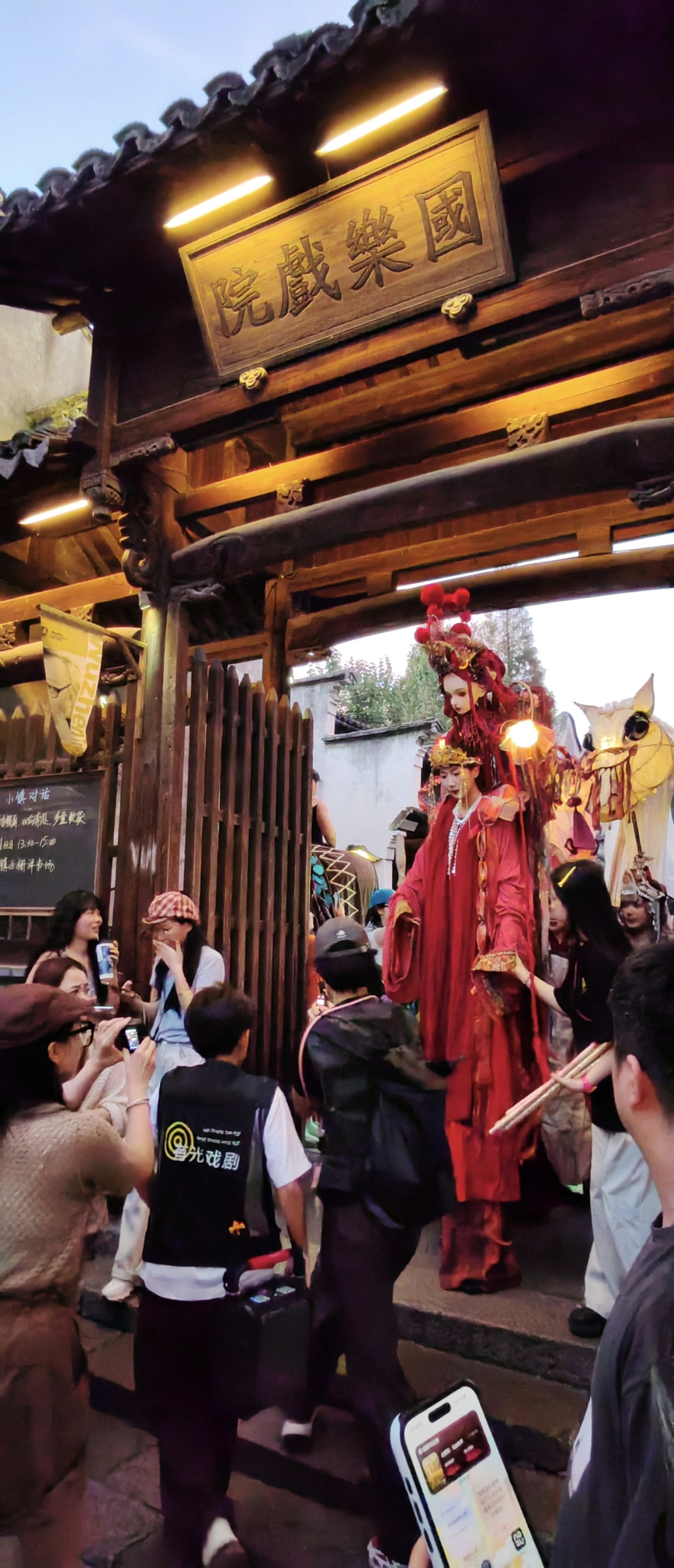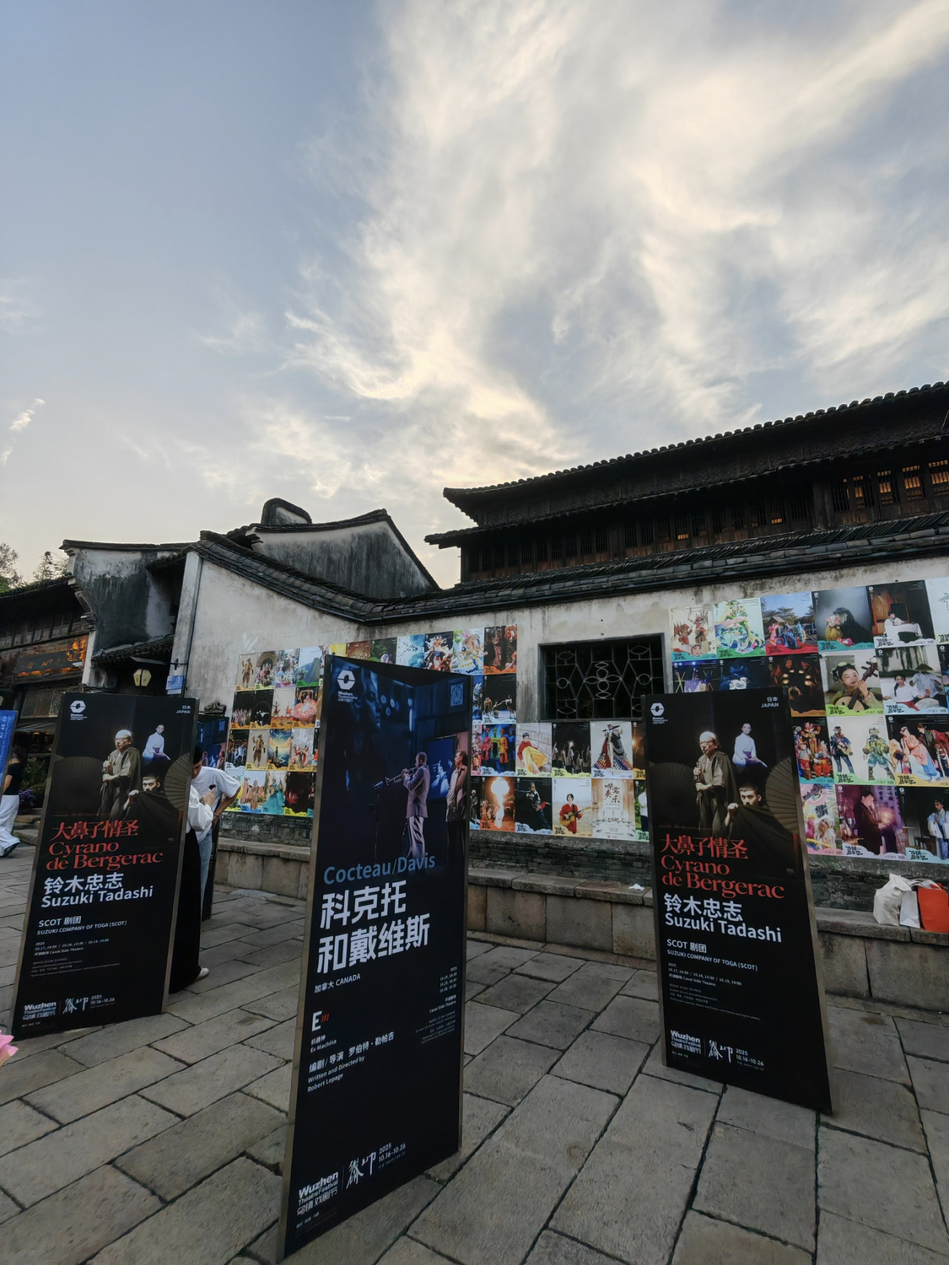第二天我们就开始看戏剧了。表演是在乌镇西栅,黄磊有时候也会来,而那天黄磊真的在!刚进去就看到了大戏宣传的立牌。这一瞬间,氛围感太强了啊朋友们。
