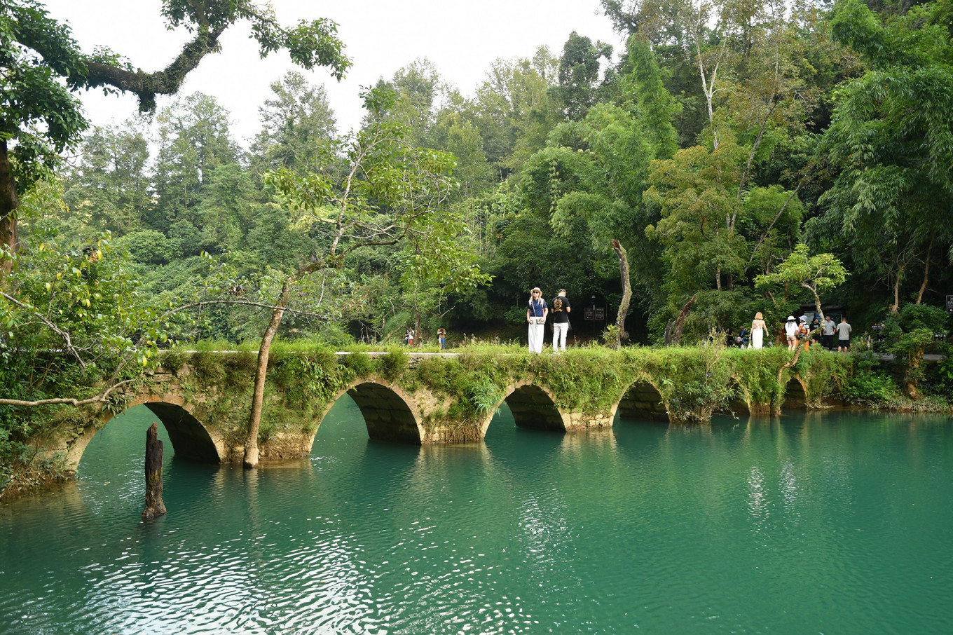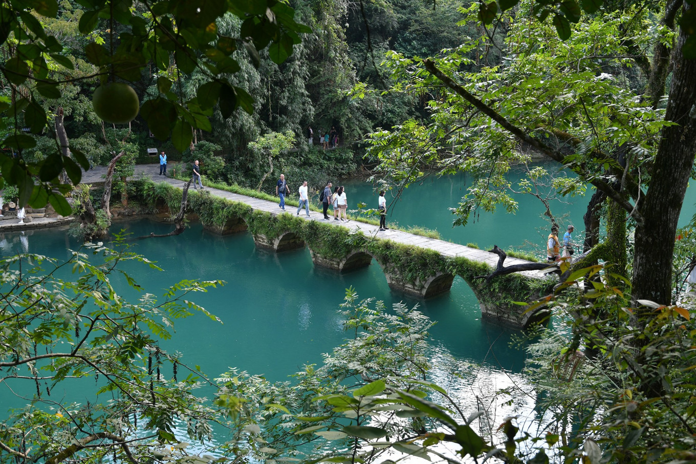 小七孔包含的小景点很多,比如说大七孔古桥,小七孔古桥,翠谷瀑布等等。水上森林和翠谷瀑布这边都可以玩。小七孔有好多人拍照。水面时绿色的,桥面很美。总之,如果是淡季出行,桥上人比较少,拍照还是很出片的。