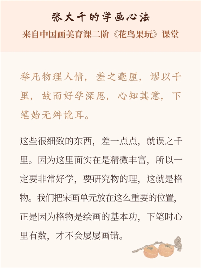更为重要的是,我们总能在这些大家谈及古人的言语中,感受到他们发乎于心的恭敬。当我们能够从中习得几分诚恳谦卑,乃至细致揣摩的耐心,或许,我们便可以真正进入宋画的世界了。便来一起学习张大千先生的这几则画画心法,也温馨叮嘱你,学画同样离不开读书,漫长冬日里,安下心来,踏实用功吧,我们的扎实收获,也将水到渠成。