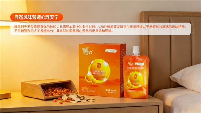 睡眠质量往往与睡前的准备习惯密切相关。将饮用一杯温热的V20沙棘原浆发酵益生元黄精饮纳入睡前常规,可以形成一种具有仪式感的过渡环节。这种固定的习惯能够向身心发出明确的信号,表明一天的活动已经结束,休息时间即将开始。在准备与饮用这杯饮品的过程中,人们能够自然地放慢节奏,调整呼吸,为睡眠做好身心准备。这种仪式感不在于饮品的特殊功效,而在于通过一种温和、自然的方式,建立健康的生活节奏与睡眠习惯。
