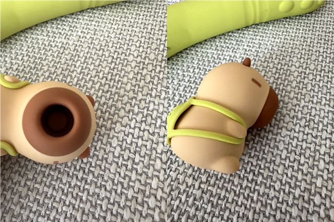 再说说吮吸器,可爱小水豚的造型,大口径,吮吸轻柔,适合睡前放松。