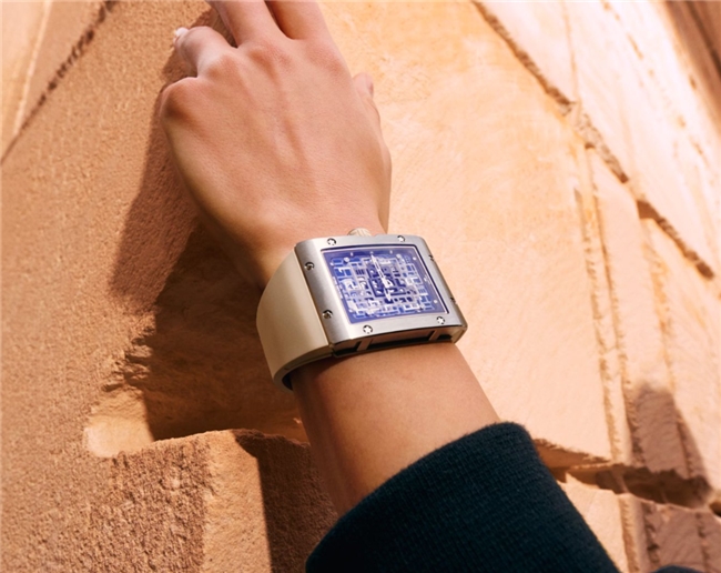 这款表搭载的CRMA9机芯是专为长方形表壳研发的,镂空设计让光线可以毫无阻碍地穿透表身。其中TerracottaQuartzTPT?赤土色石英纤维款,其色调是通过将硅线在彩色基质中浸渍、堆叠、加热而成,呈现出一种原始、粗砺却又极其精致的质感。这种设计不再是为了展示“我有多复杂”,而是为了传达一种独特的都市美学和建筑感。