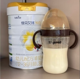 孩子属于肠胃娇气那类的,就算是吃我的neinei,有时候也会胀气,小肚子鼓鼓的呢。而且听说娇气宝宝换奶粉还容易出现敏敏、起小红点点的情况。所以我当时很认真地做功课,发现羊奶粉更适合我家孩子。羊奶分子小、脂肪球颗粒也小,理论上应该更好吸收。但具体到品牌,光看宣传不行,关键得看配方和实际喂养情况。我仔细对比后,入手了羊奶粉白月光佳贝艾特悦白羊奶粉。