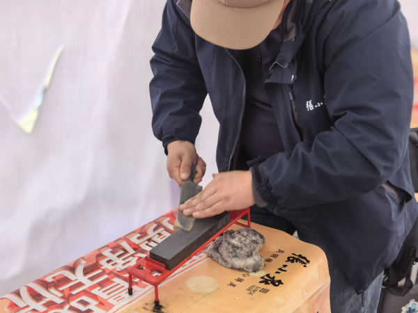 修磨台前排着几个人,师傅一边打磨一边聊天,还教我们怎么自己在家保养刀。旁边两个年轻师傅也在忙,看着挺专业。轮到我时,师傅看了看刀口,说磨磨还能用。磨完一试,切黄瓜又是那种利落的“咔嚓”声,挺有成就感。